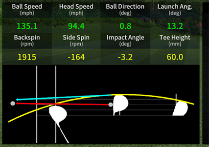 高精度センサーに基づいた計測でボールやクラブの軌道を正確に表示。